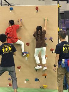 ボルダリングやアーチェリーで遊ぶ子供達。。